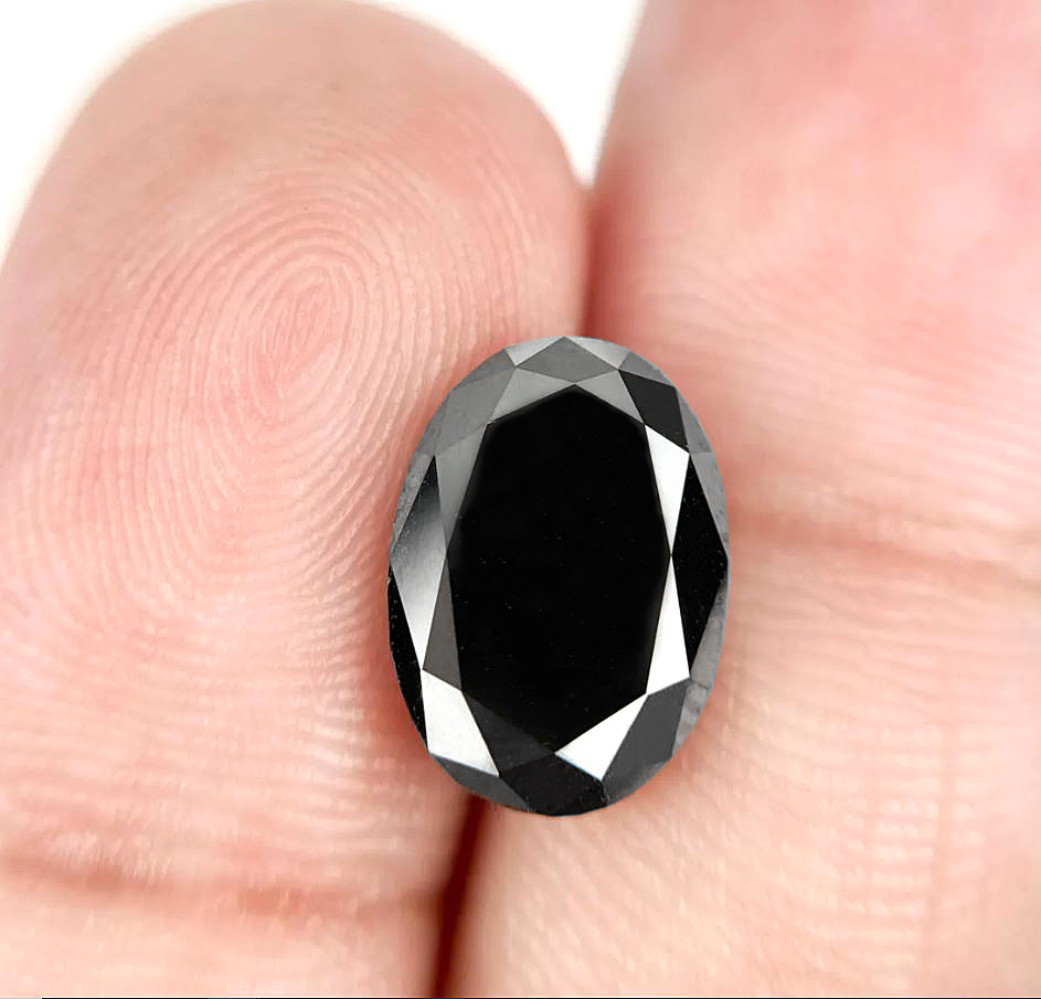 4.35 Carat Treated Black Loose Diamond, 10 MM Oval Shape Diamond For Anniversary Ring
